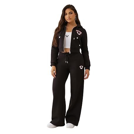 True Religion Women's Embroidered Shrunken Zip Hoodie – Cropped Full-Zip Sweatshirt with Logo Stitching