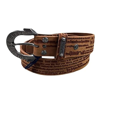 True Religion Womens Jeans Leather Belt Brown Script Hardware Logo Horseshoe Buckle (22)