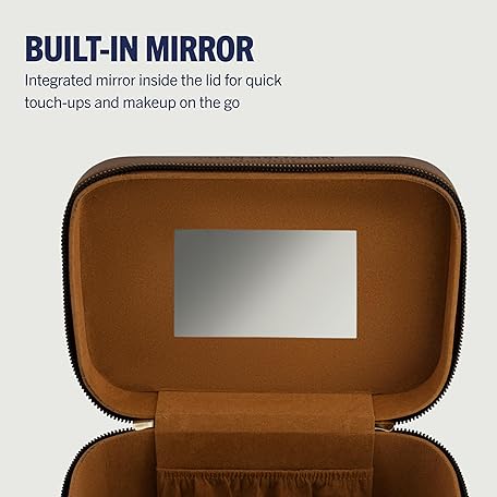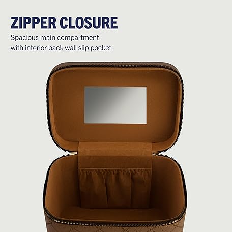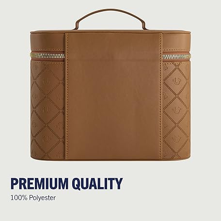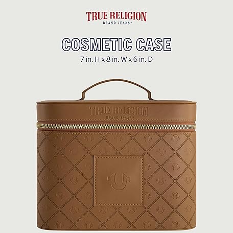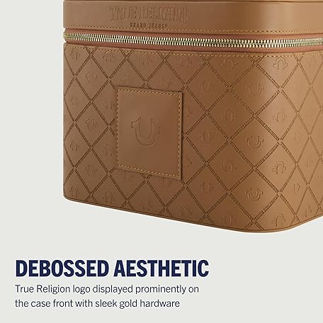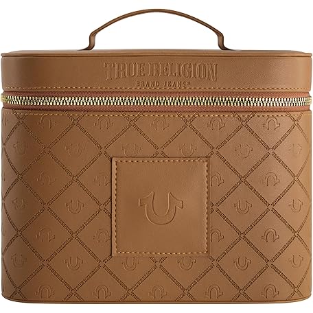 True Religion Women's Makeup Bag, Large Travel Cosmetic Case Organizer with Mirror, Brown
