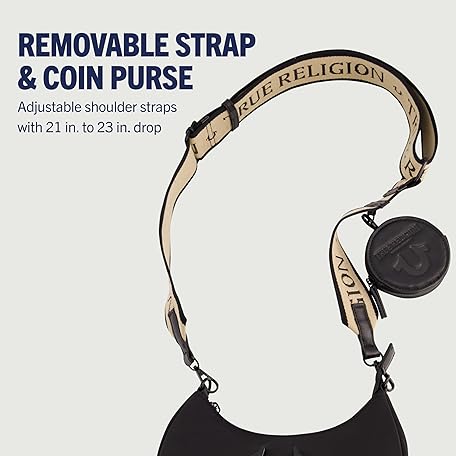 Thông tin sản phẩm True Religion Women's Shoulder Bag, Mini Crescent Hobo Handbag with Adjustable Crossbody Strap and Coin Purse, Black