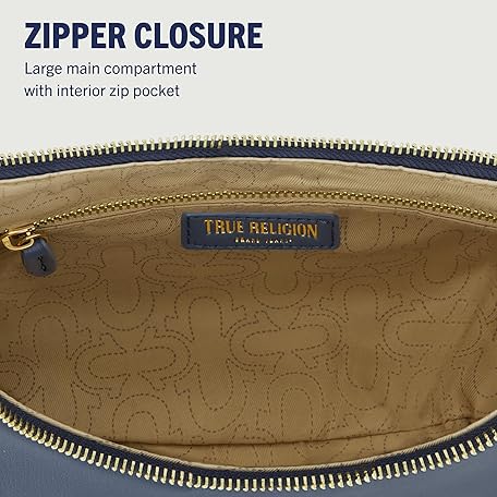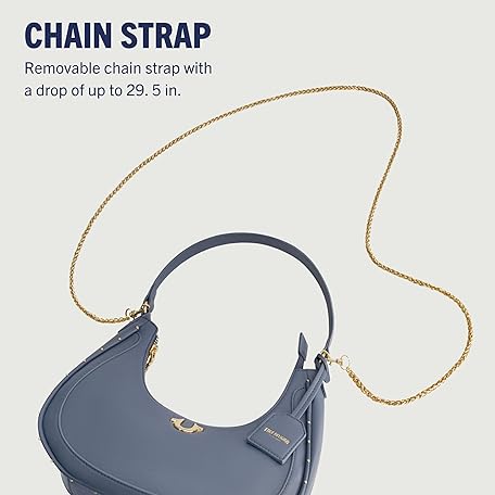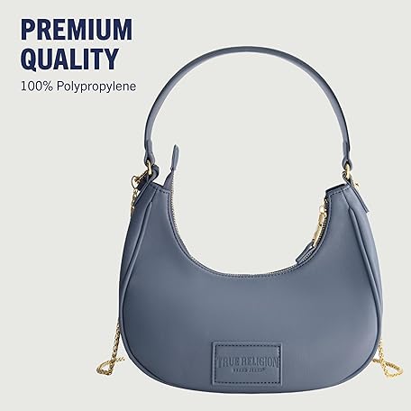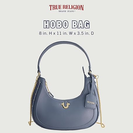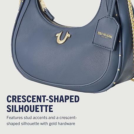 True Religion womens True Religion Hobo Bag, Women's Faux Leather Crescent Handbag With Adjustable Chain Strap