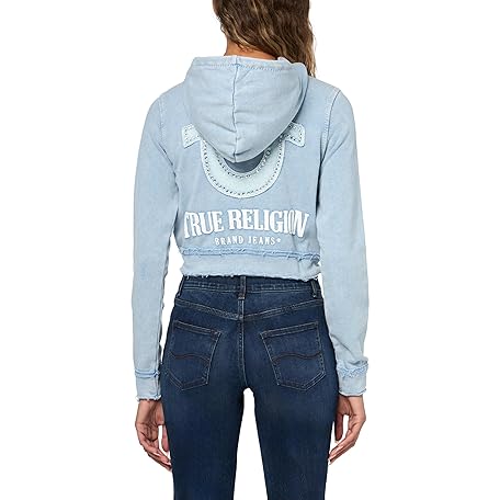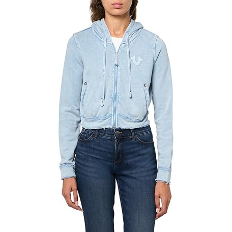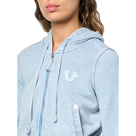 True Religion Women's Washed Raw Edge Big T Shrunken Zip Hoodie | Zip-Up Sweatshirt with Big T Logo