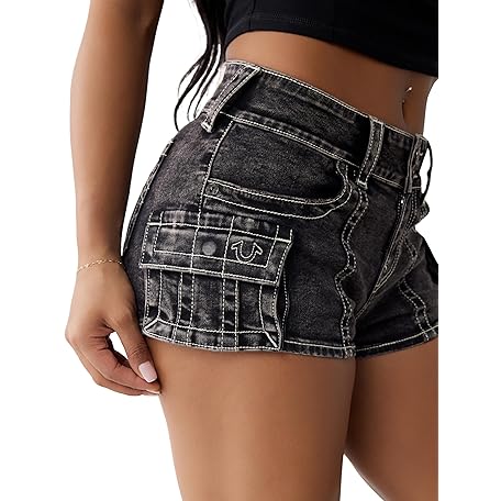 True Religion Women's Zipper Mid-Rise Hot Shorts - Midnight Mayhem | Denim Shorts with Zip
