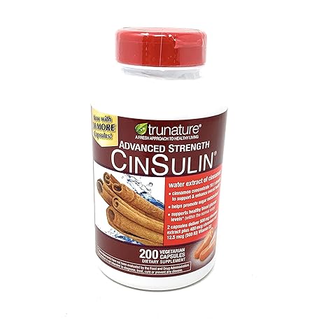 Sản phẩm TruNature Advanced Strength CinSulin 500mg., 200 Vegetarian Capsules (2 Pack) đang được bán với giá ưu đãi là $47.9055 tại nước Mỹ.