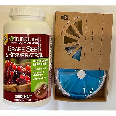 Sản phẩm TruNature Grapeseed with Resveratrol 300 Capsules and HealthEmpire Pill Orgnizer Bundles (Pack of 1) đang được bán với giá ưu đãi là $34.8691 tại nước Mỹ.