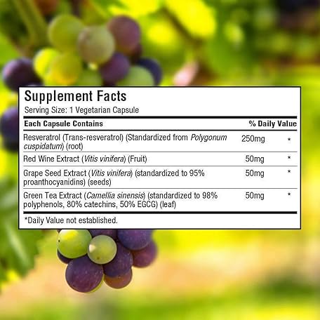 • trunature Resveratrol Plus Standardized Trans-Resveratrol 250 Milligram, 140 Vegetarian Capsules