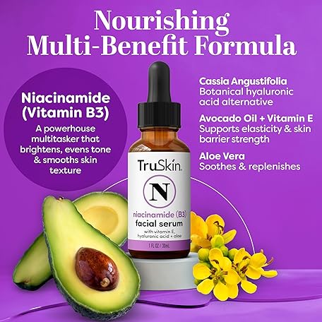 Thông tin sản phẩm TruSkin (B3) Niacinamide Serum for Face – Minimize Appearance of Pores, Balance Moisture & Tone, Hydrate & Soothe with Hyaluronic Acid, Vitamin E, Aloe & Avocado Oil, 1 fl oz