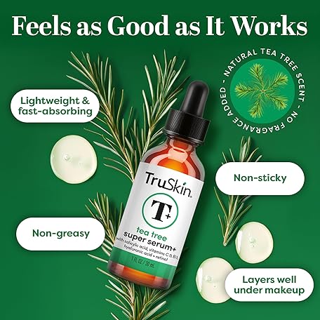 Thông tin sản phẩm TruSkin Tea Tree Oil Acne Treatment for Face – Acne Serum – Improve the Appearance of Pores, Skin Tone for Smooth, Glowing Skin with Salicylic Acid, Vitamin C, Niacinamide & Retinol, 1 fl oz
