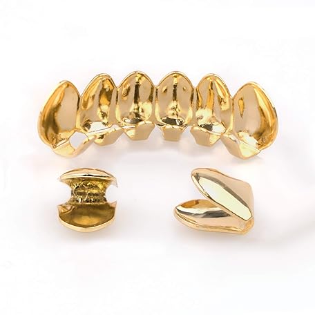 Sản phẩm TSANLY Gold Grillz Mouth Teeth 24K Plated Gold Custom Fit Top & Bottom Set Caps Grillz For Women Gift + Extra Molding Bars + Microfiber Cloth đang được bán với giá ưu đãi là $14.0501 tại nước Mỹ.