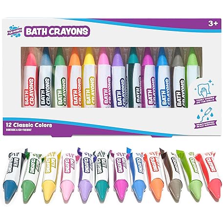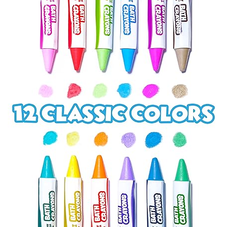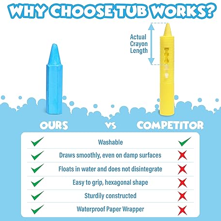 Thông tin sản phẩm Tub Works® Smooth™ Bath Crayons Bath Toy, 12 Pack | Nontoxic, Washable Bath Crayons for Toddlers & Kids | Unique Formula Draws Smoothly & Vividly on Wet & Dry Tub Walls | Hexagon Grip Bathtub Crayons