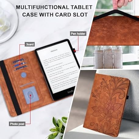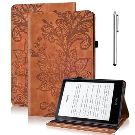 TUOLISG Case for 6.8" Kindle Paperwhite 11th Generation 2021 & Kindle Paperwhite Signature Edition, Embossed Lace Premium PU Leather Case with Card Slot for Kindle Paperwhite 2021, Brown
