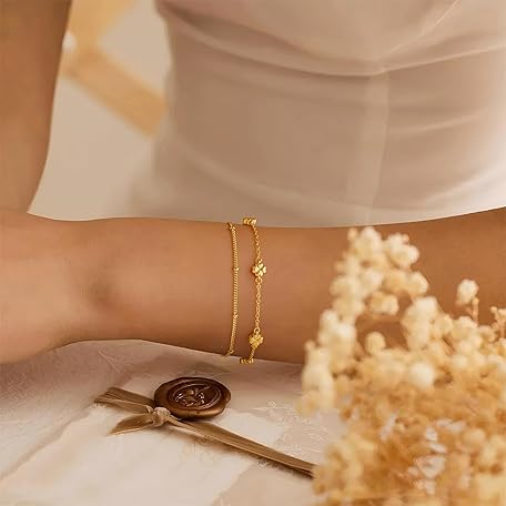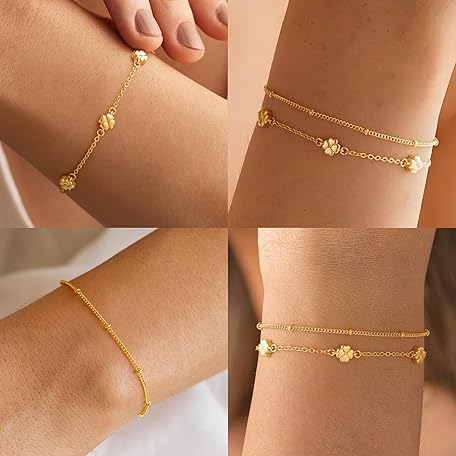 Sản phẩm Turandoss 14K Gold Plated Bracelets for Women, Dainty Clover Heart Cross Butterly Evil Eye Cubic Zirconia Clover Flower Stackable Bracelet Set, Cute Birthday Gifts for Women Girls Jewelry đang được bán với giá ưu đãi là $5.4391 tại nước Mỹ.