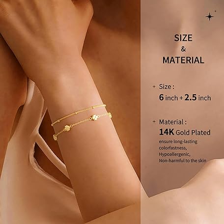 Thông tin sản phẩm Turandoss 14K Gold Plated Bracelets for Women, Dainty Clover Heart Cross Butterly Evil Eye Cubic Zirconia Clover Flower Stackable Bracelet Set, Cute Birthday Gifts for Women Girls Jewelry
