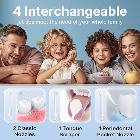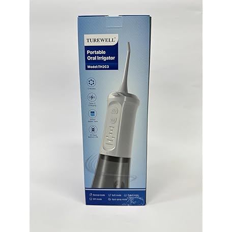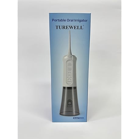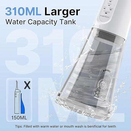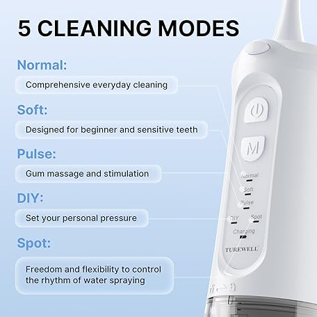 TUREWELL Water Dental Flosser for Teeth/Braces, 310 ML Portable Cordless Oral Irrigator with 5 Modes, IPX7 Waterproof Electric Water Flossing with 4 Replacement Jet Tips for Travel and Home, White