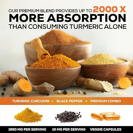 Thông tin sản phẩm Turmeric Curcumin Supplement 1950mg - 95% Curcuminoids with Organic Turmeric & BioPerine Black Pepper Extract for Best Absorption, Natural Vegan Joint Support, Non-GMO, Bottled in USA - 240 Capsules