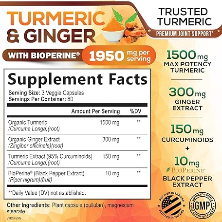 Thông tin sản phẩm Turmeric Curcumin Supplement 1950mg - 95% Curcuminoids with Organic Turmeric & Ginger, BioPerine Black Pepper for Best Absorption, Nature's Vegan Joint Support, Non-GMO, Bottled in USA - 240 Capsules