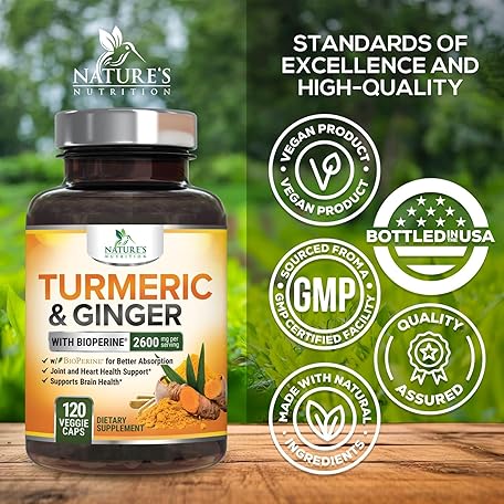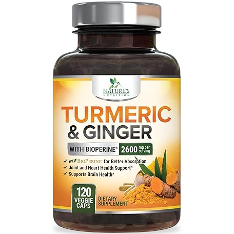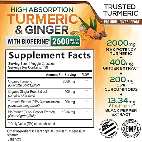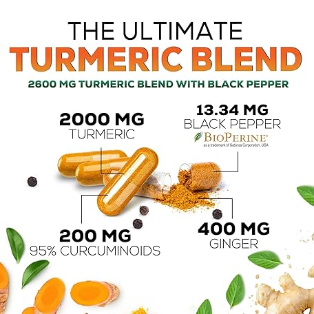 Sản phẩm Turmeric Curcumin Supplement 2600mg - with Organic Ginger & Turmeric, BioPerine Black Pepper Extract 95% Curcuminoids - Advanced Absorption Joint & Antioxidant Extra Strength Support - 120 Capsules đang được bán với giá ưu đãi là $18.3338 tại nước Mỹ.