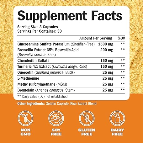 Sản phẩm Turmeric Curcumin Supplement with Boswellia Serrata Extract & Glucosamine Chondroitin MSM and Turmeric Supplement đang được bán với giá ưu đãi là $51.9276 tại nước Mỹ.