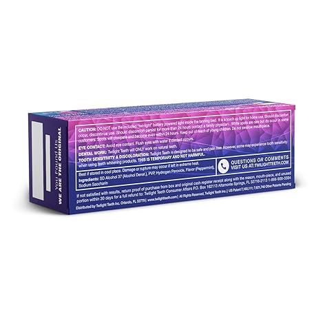 Sản phẩm Twilight Teeth Whitening Kit | Specially Designed Kit Includes Whitener Gel, Mouthpiece For Tanning Bed Use & A Powerful UV Light Mouthpiece For At Home Whitening | No Rinse Gel Whitener Formula đang được bán với giá ưu đãi là $27.2282 tại nước Mỹ.