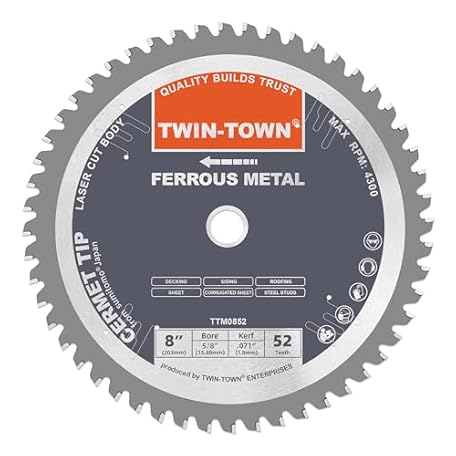 • TWIN-TOWN 8 Inch 52 Teeth Dry Cut Steel and Ferrous Metal Cermet Saw Blade with 5/8-Inch Arbor