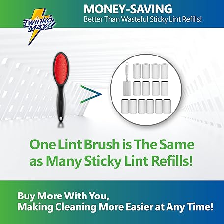 Twinko Max Lint Brush, Lint Remover, Pet Hair Remover, Clothes Brush, Magic Lint Remover Brush, Sheet and Carpet Cleaning Brush, 2-Sided and Reusable, No Need Lint Roller Refill.