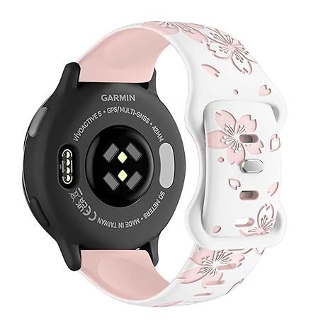 Two-Tone Flower Engraved Bands Compatible with Garmin Vivoactive 6/Vivoactive 5/3/3 Music Watch Bands, 20mm Soft Silicone Strap for Galaxy Watch 7/6/5/5 Pro 4,Venu Sq 2/Forerunner 55/165/245/645