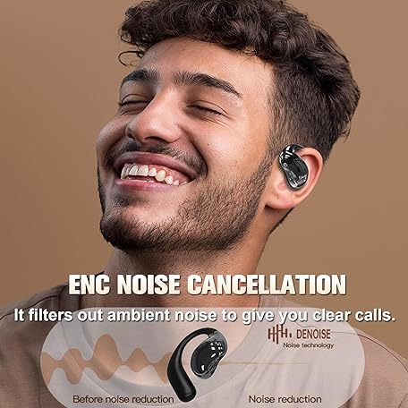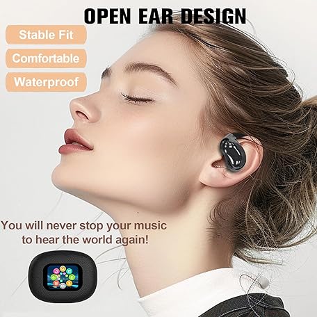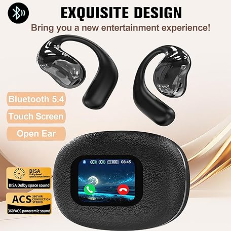 TWS Wireless Bluetooth Smart Touch Screen Ultra Open Ear Earbuds with Ear Hooks Over Ear Buds Sport Earphones with Screen On Case Air Conduction Touchscreen Bluetooth Headphones for Gym Work Running