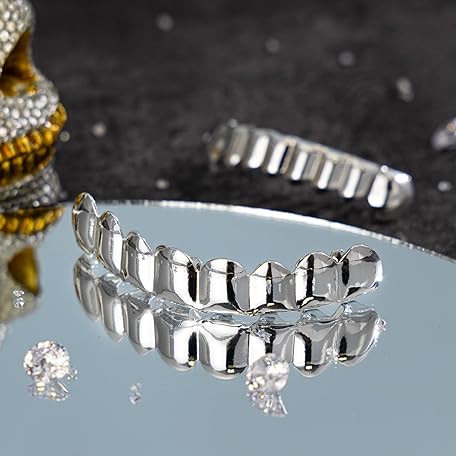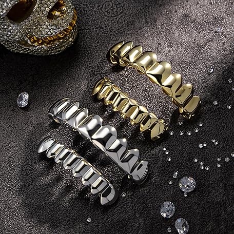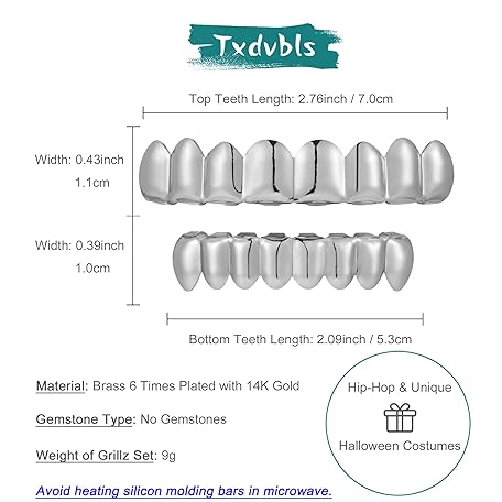 Sản phẩm Txdvbls Grillz - Gold & Silver 6/8 Teeth Top & Bottom Grillz Set for Men and Women, 14K Gold Plated Teeth Caps for Halloween Costume Accessories đang được bán với giá ưu đãi là $10.8891 tại nước Mỹ.