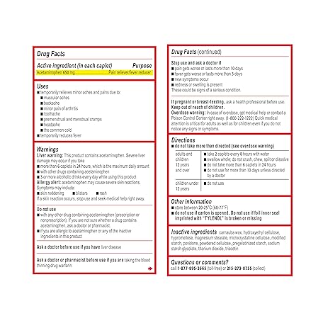 Thông tin sản phẩm Tylenol 8 Hour Acetaminophen 650 mg Extended Release Caplets, Fast Acting Bi-Layer Design, Quick & Long Lasting Pain Relief for Muscle, Joint, Back & Arthritis Aches, Fever Reducer, 100 Count