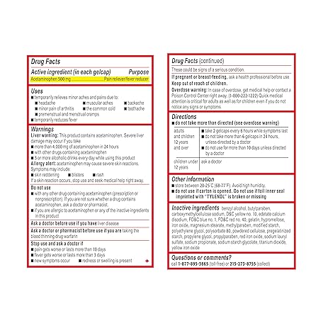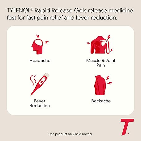 Thông tin sản phẩm Tylenol Extra Strength Acetaminophen Rapid Release Gels, Pain Reliever & Fever Reducer, Gelcaps with Laser-Drilled Holes for Fast Release, Gentle on Stomach, 500 mg Per Gelcap, 100 Count OTC Medicine
