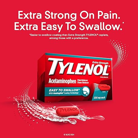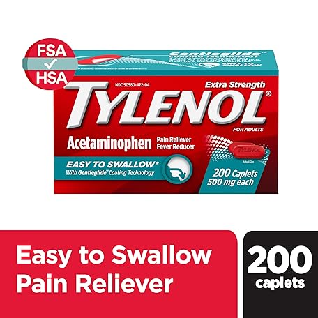 Thông tin sản phẩm Tylenol Extra Strength Easy to Swallow Acetaminophen, Pain Reliever & Fever Reducer Coated Caplets for Adults with Gentleglide Technology, 500 mg Extra Strength Acetaminophen, 200 ct