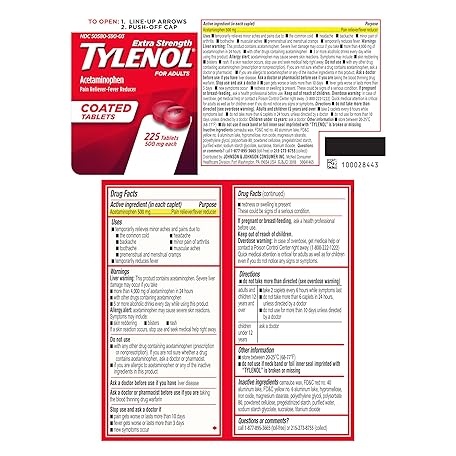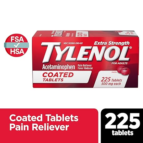 Thông tin sản phẩm Tylenol Extra Strength Pain Reliever & Fever Reducer, Round Coated Tablets, 500 mg Acetaminophen Pain Relief Pills for Headache, Toothache & Minor Arthritis Pain, 225 ct