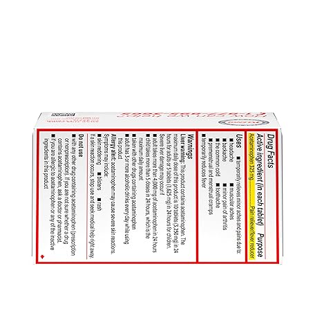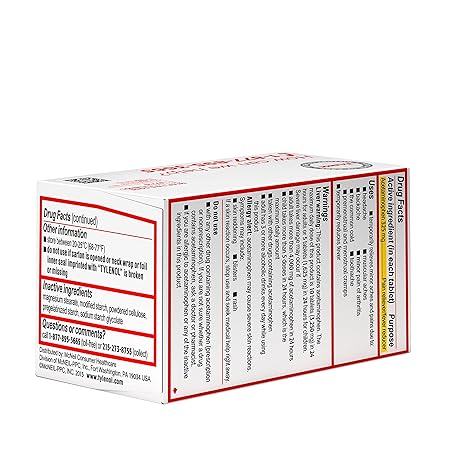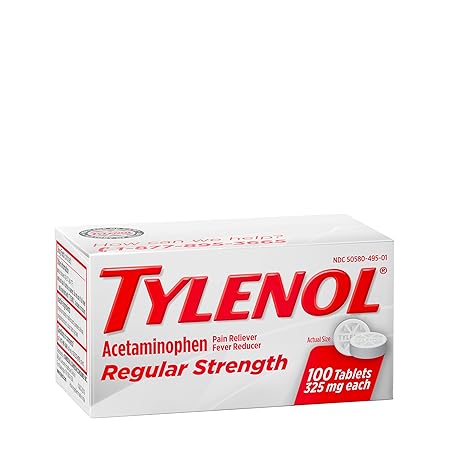 Thông tin sản phẩm Tylenol Regular Strength Tablets with 325 mg of Acetaminophen, Fever Reducer & Pain Reliever for Headache, Backache, Muscle Aches, Joint Pain & Menstrual Cramps, 100 ct