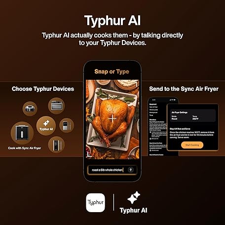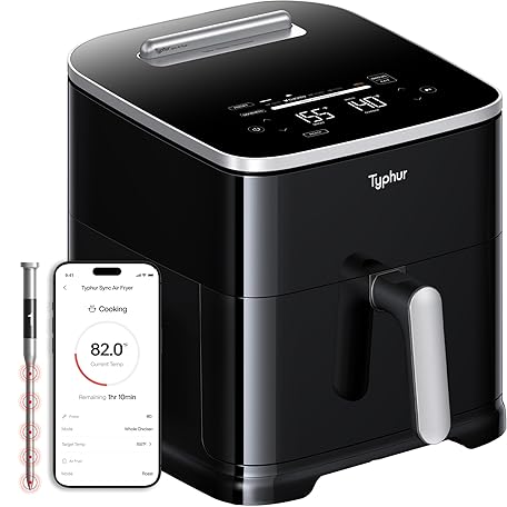 Typhur 8QT Sync Air Fryer with Built-in Wireless Meat Thermometer, 9-in-1 Smart Non Toxic Ceramic Airfryer for Quick Easy Meals, 450°F Max, Cooks 6lb Whole Chicken, Dishwasher Safe, 120V