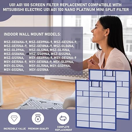 U01 A01 100 Replacement Filter Compatible with Mitsubishi Electric U01 A01 100 Nano Platinum Mini Split Filter, 2 Pack