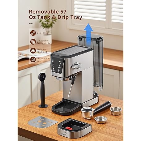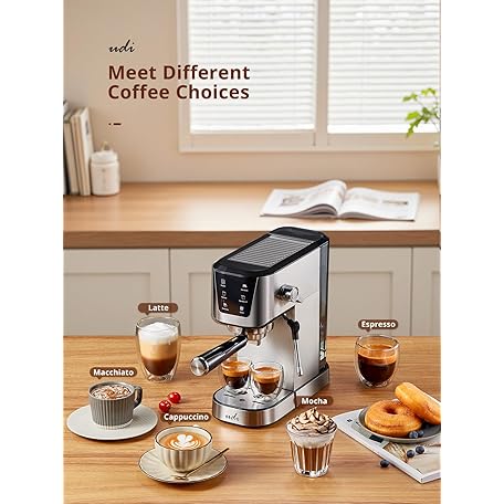 Thông tin sản phẩm UDI Espresso Machines with LED Touch screen, 20 Bar Espresso Coffee machine for Lattes, Cappuccinos, Americano, Compact Cappuccino Latte Machine for Home, Silver
