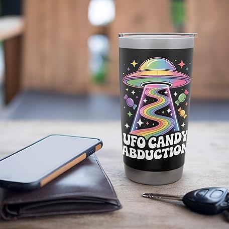 Sản phẩm UFO Candy Abduction Halloween Sci Fi Humor Stainless Steel Insulated Tumbler đang được bán với giá ưu đãi là $22.8791 tại nước Mỹ.