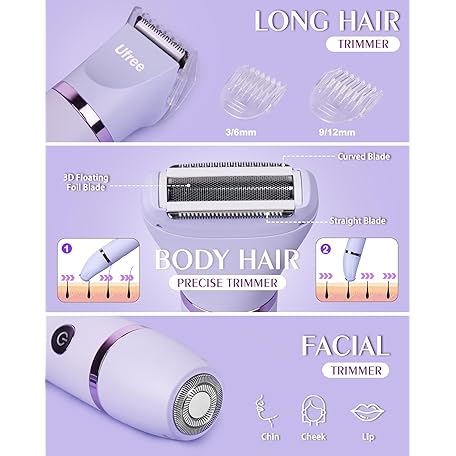 Thông tin sản phẩm Ufree Bikini Trimmer Electric Razors for Women, Rechargeable Pubic Body Hair Trimmer Electric Shaver for Legs Body Hair, Bikini Shaver IPX7 Waterproof, Gifts for Women, Purple