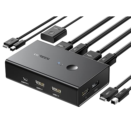 Thương hiệu UGREEN là cái tên nổi tiếng được rất nhiều khách hàng trên thế giới chọn lựa. Với kiểu dáng đẹp mắt, sang trọng, sản phẩm UGREEN HDMI KVM Switch 1 Monitor 2 Computers, with 4 USB Ports 4K@60Hz KVM Switches for Sharing One Monitor Keyboard Mouse Printer with 2 HDMI Cables, 2 USB Cables, Desktop Controller là sự lựa chọn hoàn hảo nếu bạn đang tìm mua một món cho riêng mình.