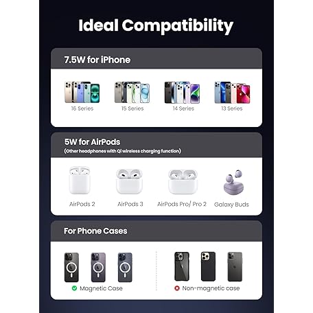 Thông tin sản phẩm UGREEN MagFlow 2-in-1 Magnetic Wireless Charging Stand Fast Wireless Charger for iPhone 17 16 15 14 13 12 Series and AirPods, MagSafe Compatible Qi Charging Stand with 3 FT USB-C Cable (No AC Adapter)
