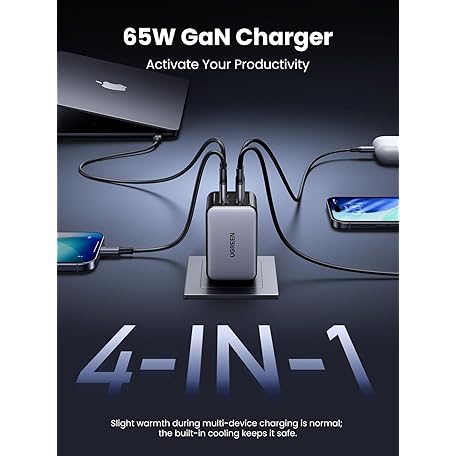 UGREEN Nexode 65W GaN USB C Wall Charger, 4-Port Fast Type-C Charger Compatible with MacBook Pro/Air, iPhone 17/16/15 Series, Galaxy S25/S24, Pixel 10/9, iPad Pro, Steam Deck