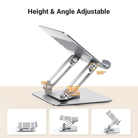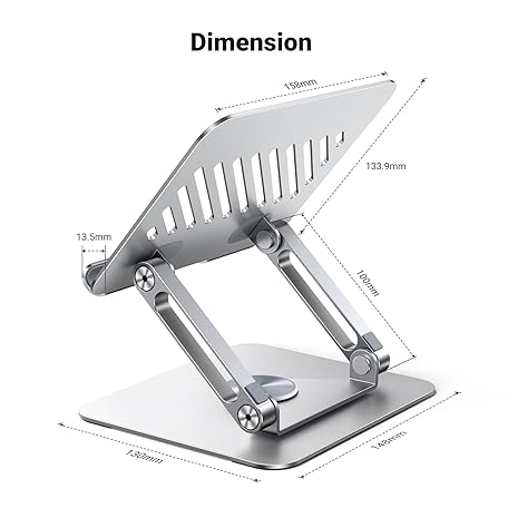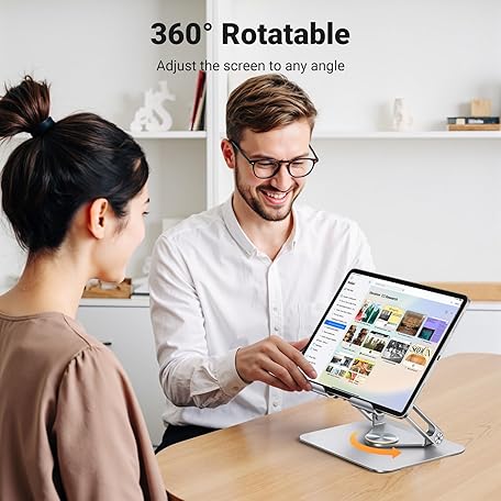 UGREEN Tablet Stand Holder for Desk with 360° Rotating Base Aluminum Dual Rod Support Adjustable Home Office Accessories Compatible with iPad Pro 13 12 11 Air Mini 5 4 3 Phone E-Reader Silver