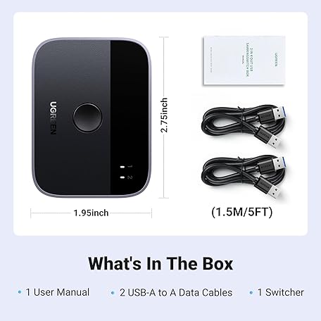 Thương hiệu UGREEN là cái tên nổi tiếng được rất nhiều khách hàng trên thế giới chọn lựa. Với kiểu dáng đẹp mắt, sang trọng, sản phẩm UGREEN USB 3.0 Switch 2 in 2 Out, USB Switcher 2 Computers Sharing Keyboard and Mouse Printer Scanner Webcam, Printer Splitter for 2 Computers, 2 Port USB Selector Switch with 2 USB3.0 Cables là sự lựa chọn hoàn hảo nếu bạn đang tìm mua một món cho riêng mình.