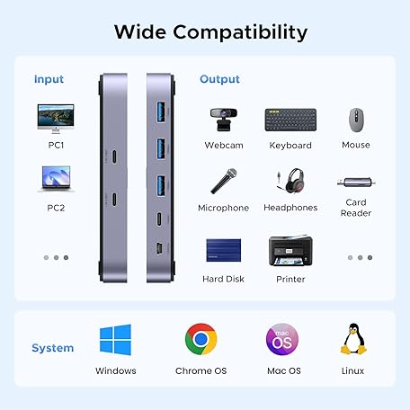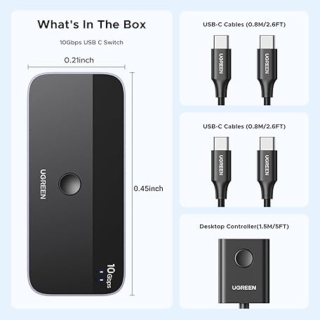 Thông tin sản phẩm UGREEN USBC Switch 2 Computers Share 4 USB 3.2 Ports, 10Gbps Switcher Selector for PC Laptop Keyboard Mouse, Sharing Switch Adapter with 2 USB-C to C Data Cables and Remote