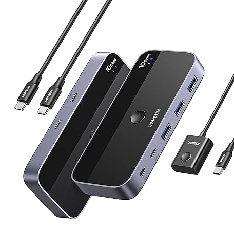 Sản phẩm UGREEN USBC Switch 2 Computers Share 4 USB 3.2 Ports, 10Gbps Switcher Selector for PC Laptop Keyboard Mouse, Sharing Switch Adapter with 2 USB-C to C Data Cables and Remote đang được bán với giá ưu đãi là $61.0291 tại nước Mỹ.
