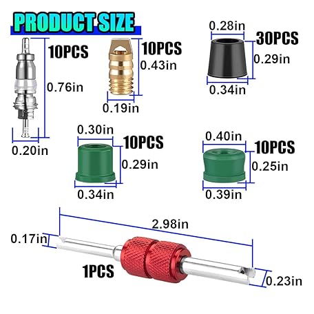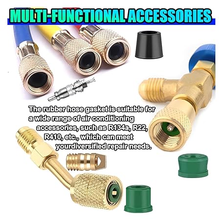 UHANBUT 71PCS Yellow Jacket HVAC Hose Gasket, Air Conditioning Valve Core Assortment Kit, Including 10PCS Valves & 10PCS Valve Cores & 50PCS Hose Gaskets, Universal Car Repair Tool Accessories