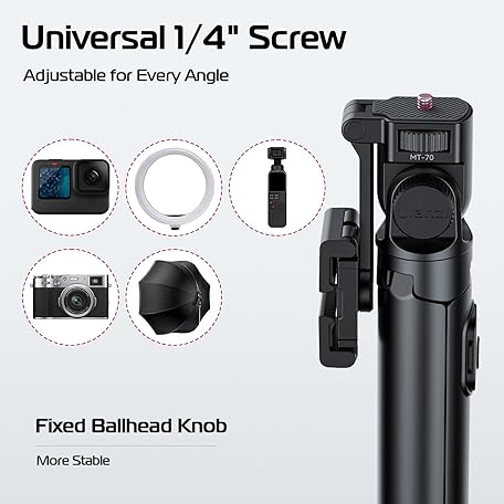 Thông tin sản phẩm ULANZI MT-70 Extendable Tripod, 63" Selfie Stick Vlog Tripod Stand with 2 Phone Clips as Teleprompter, 360° Rotate Camera Holder for iPhone, Sony, Canon, DJI Osmo Nano, Lightweight for Travel, Black