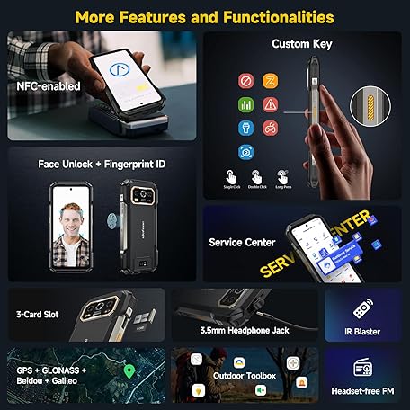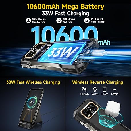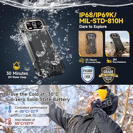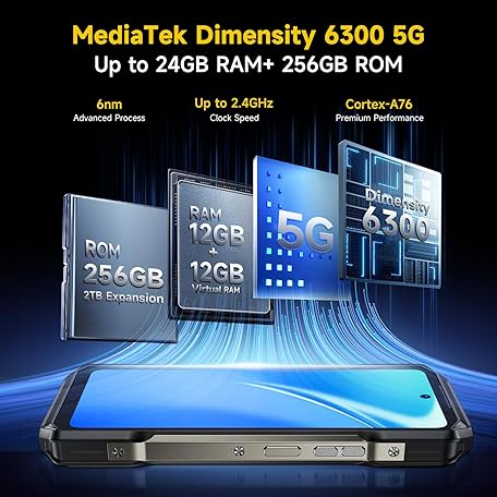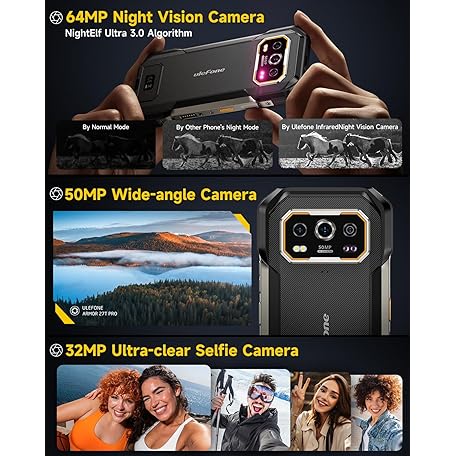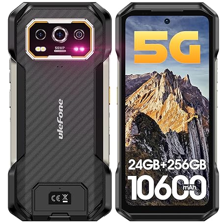 • Ulefone Armor 27 Pro 5G Rugged Smartphone Android 14 2024, 12GB+256GB 10600mAh/33W Dimensity 6300 50MP+64MP Night Vision 6.78" FHD+ 120Hz IP68/69K Waterproof Dual SIM Smartphone Fingerprint ID NFC