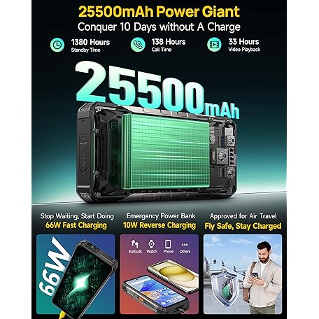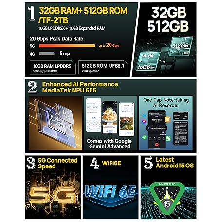 Ulefone Armor 34 Pro 5G Rugged Smartphone with 150 Lumens Projector, 32GB+512GB ROM/2TB, 25500mAh 66W, Android 15, 6.95" 120Hz, 64MP+50MP+50MP 32MP, 1100LM LED Light/Waterproof/NFC/Dual 5G/Widevine L1