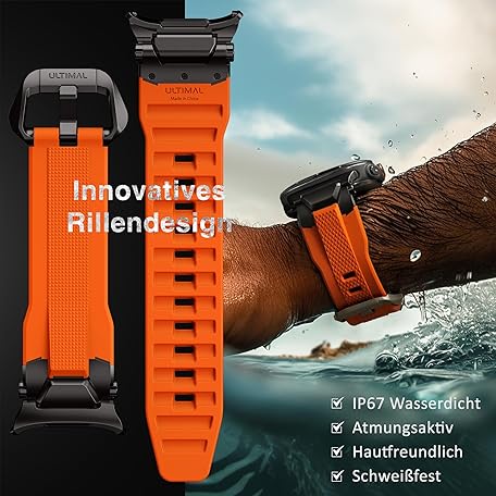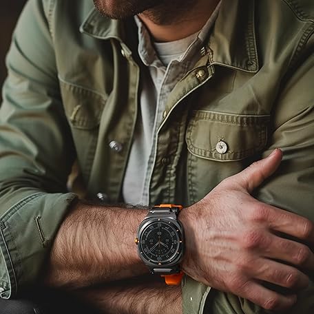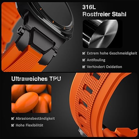 ULTIMAL Watch Band for Samsung Galaxy Watch Ultra 47mm (2025/2024) Compatible with Samsung Watch Strap Bands for Men Sport Bands for Watch Rugged Premium TPU & Metal (Orange+Black)